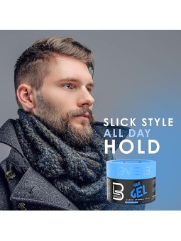 Gel l3vel3 de fijación fuerte y brillo natural, ideal para estilos masculinos y uso en casa y profesional en barberías – sin escamas, fórmula de base acuosa que deja el cabello limpio y con volumen.