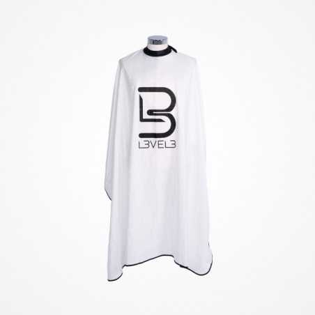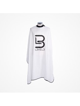 Capa de corte con cuello de goma de L3VEL3, fabricada en poliéster impermeable. Máxima protección frente a cabellos, agua, coloraciones y productos técnicos. Ajuste cómodo y seguro.