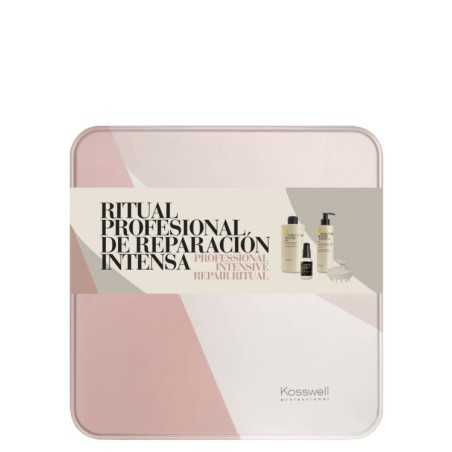 Pack profesional de reparación intensiva con champú, tratamiento leave-in, sérum nocturno y masajeador. Repara, fortalece y aporta brillo al cabello dañado.