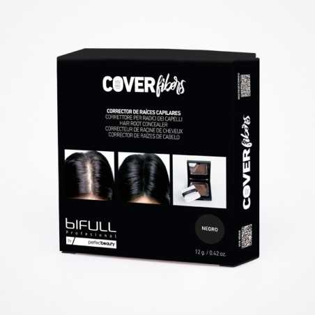 Cover Fibers · Negro es un corrector de raíces en polvo de uso profesional que disimula raíces visibles y crea la ilusión óptica de un cabello más denso. Su textura se aplica fácil sobre cabello seco con la esponja incluida, y desaparece con el primer lavado, ideal para retoques entre coloraciones.